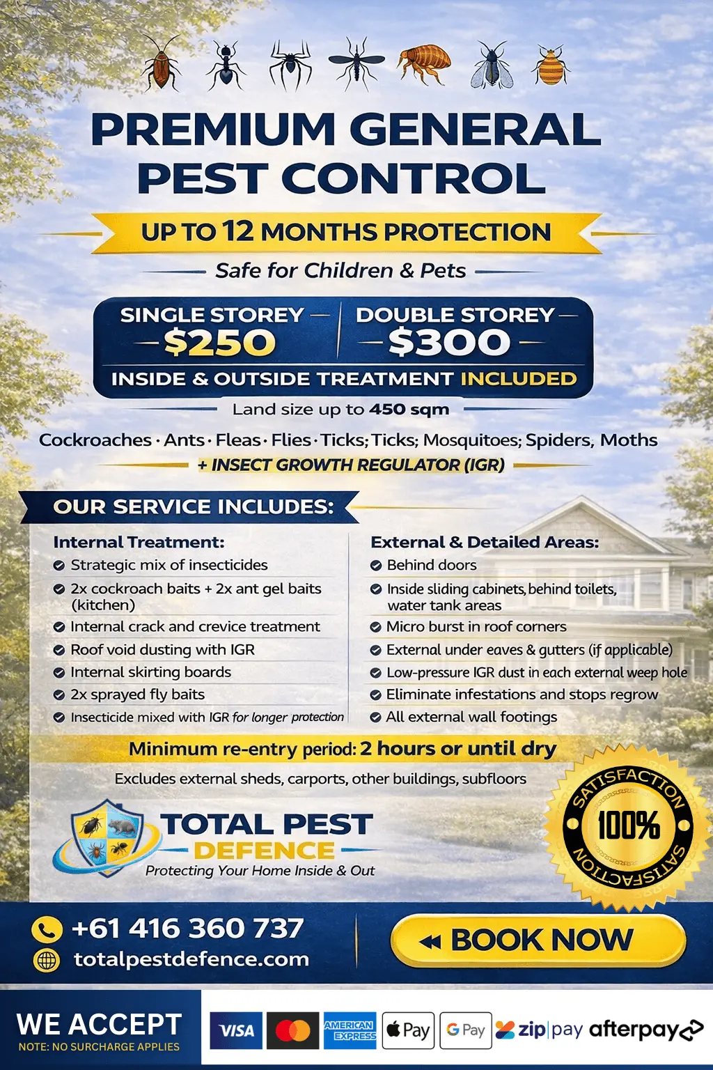 Protect your home and business from unwanted pests with Total Pest Defence, Melbourne’s trusted pest control specialists. Our expert team offers residential and commercial pest control solutions, ensuring your property remains safe, hygienic, and pest-free.